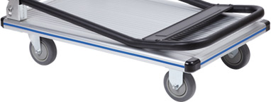 Bonne capacité de charge et de manoeuvrabilité dans des zones limitées. Les roulettes centrales peuvent être remplacées par des roulettes montées. Capacité de charge maximale = charge totale/2.
