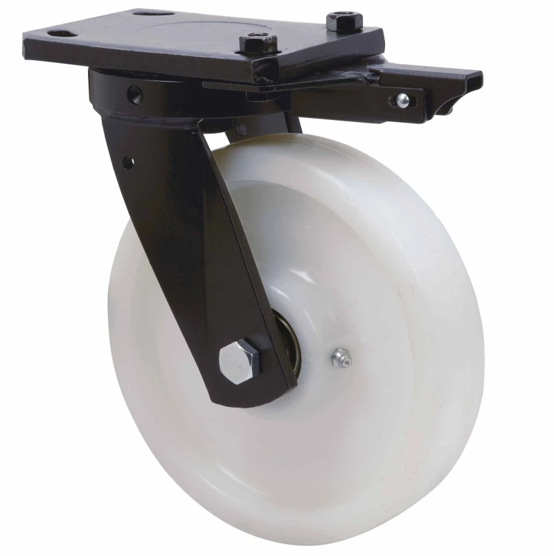 Roulettes en nylon extrafort, indiquées spécialement pour supporter de fortes charges jusqu'à 1 250 kg.