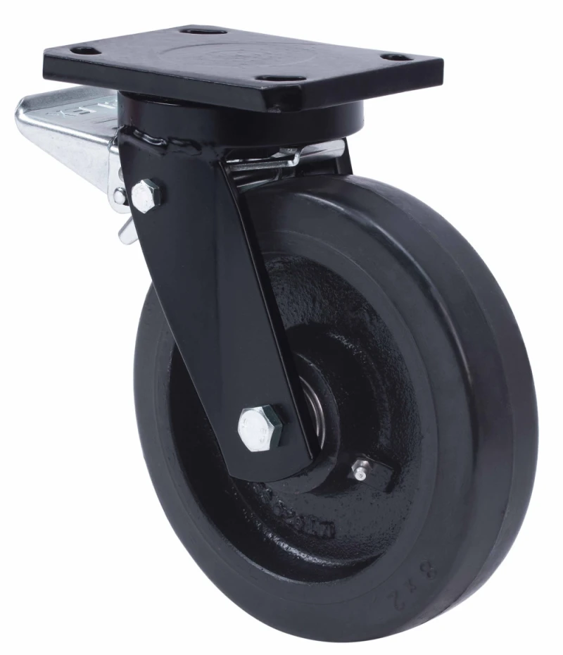 Roulettes à noyau en acier et bande de caoutchouc noir naturel. Indiquées spécialement pour supporter de fortes charges jusqu'à 850 kg.