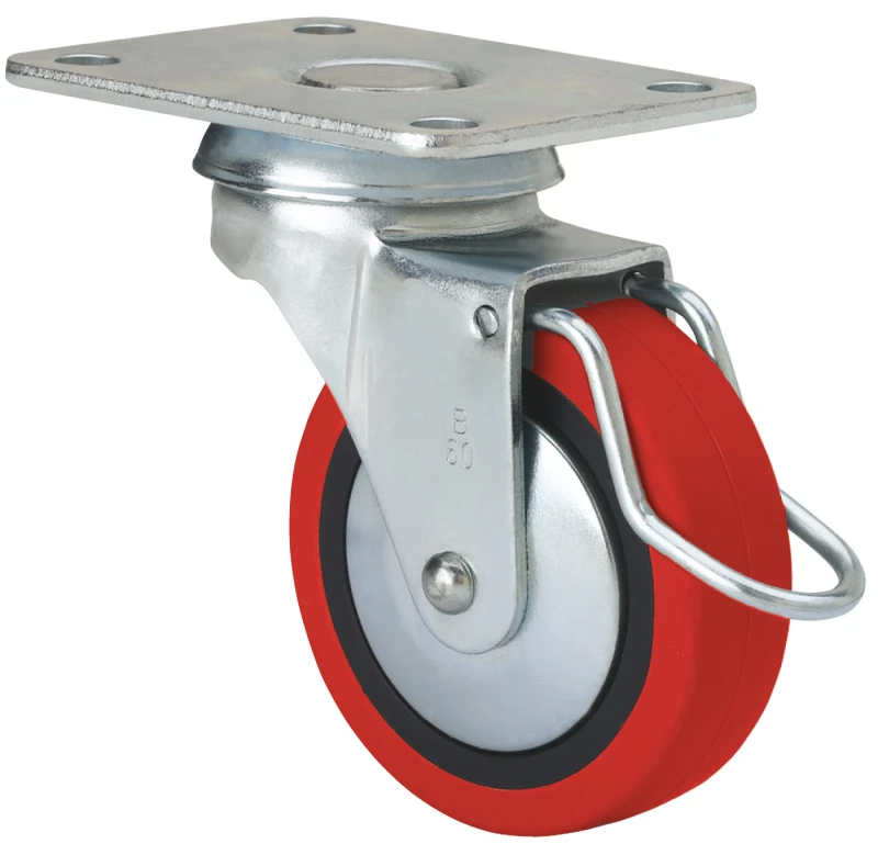 Roulettes rouges en polyuréthane injecté doux utilisées spécialement pour supporter des charges jusqu'à 40 kg.