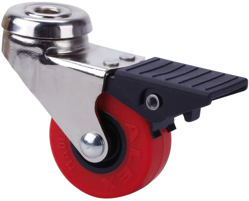 Roulettes rouges en polyuréthane injecté souple indiquées spécialement pour supporter des charges jusqu'à 40 kg.