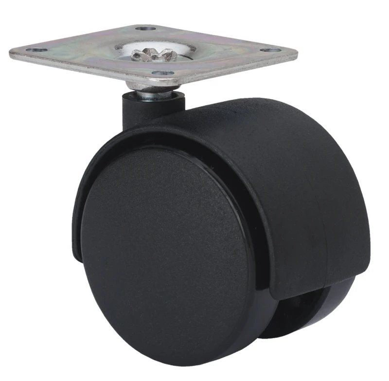 Roulettes en polyamide noir indiquées spécialement pour supporter des charges jusqu'à 60 kg.