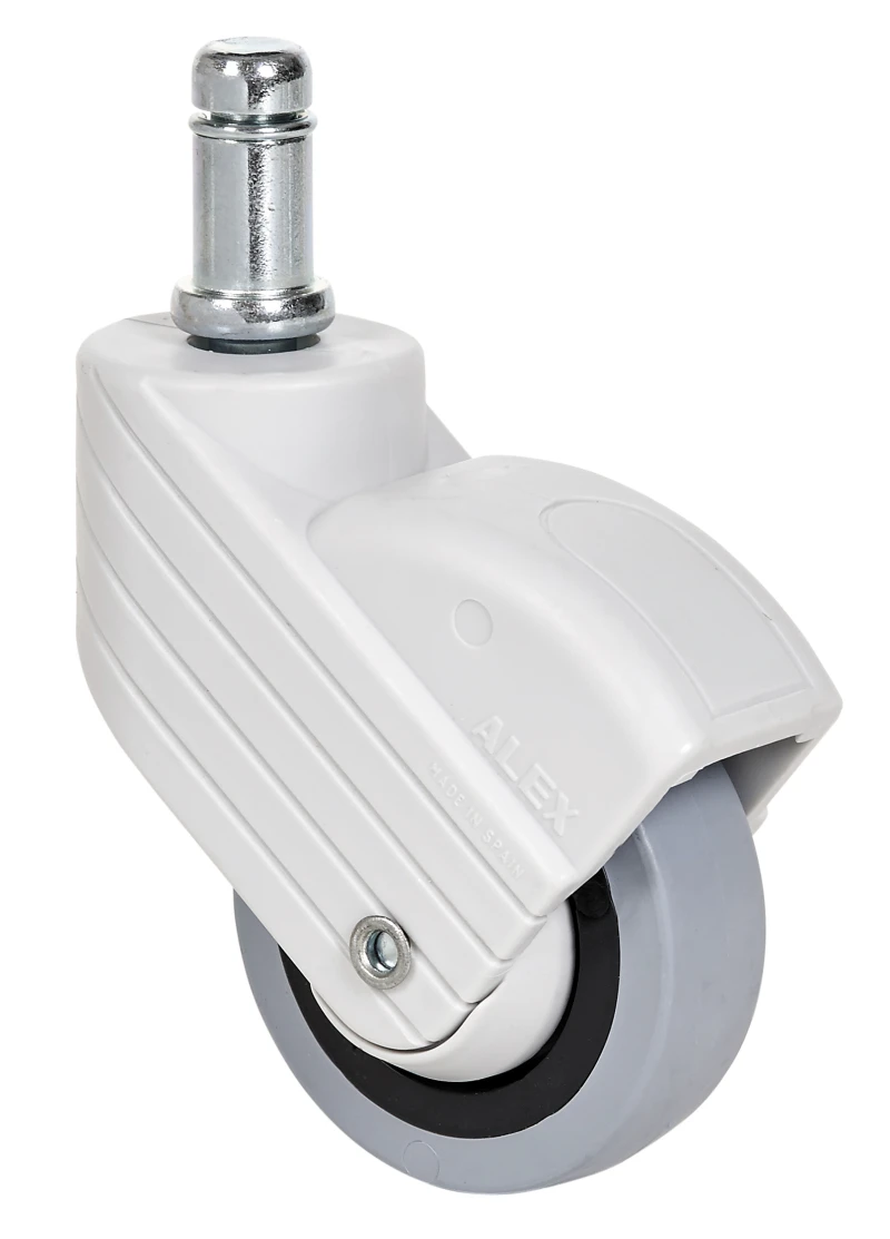 Roulettes et caoutchouc gris, indiquées spécialement pour supporter des charges jusqu'à 22 kg.