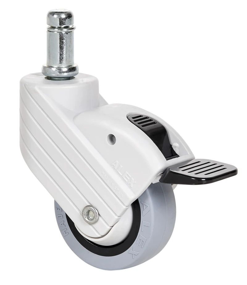 Roulettes et caoutchouc gris, indiquées spécialement pour supporter des charges jusqu'à 22 kg.