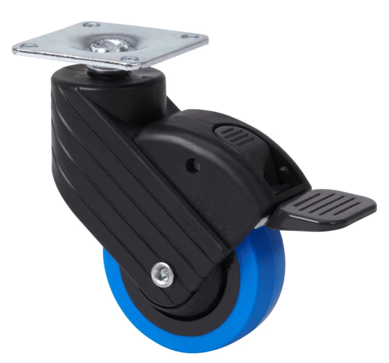Roulettes en polyuréthane injecté bleu, indiquées spécialement pour supporter des charges jusqu'à 30 kg.