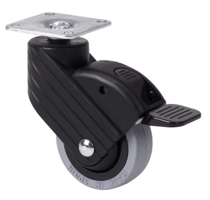 Fabriquée en polyamide renforcé. Support avec plaque et tige de fixation filetée, avec et sans frein. Frein ergonomique arrondi avec retour intégré. Roulettes conçues tout particulièrement pour le secteur du meuble et de la restauration. Couleur personnalisée en option. Fabriquées selon les normes européennes EN 12528