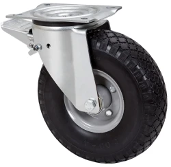 Roulettes couleur noire, avec jante métallique et bandage souple en polyuréthane increvable, indiquées spécialement pour supporter des charges jusqu'à 100 kg.