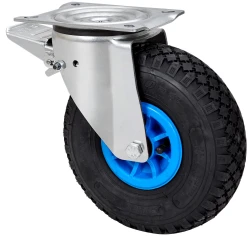 Roulettes couleur noire, avec jante en polypropylène et bandages pneumatiques de 4 plis indiquées spécialement pour supporter des charges jusqu'à 175 kg.