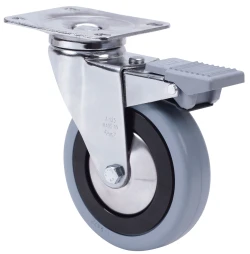 Roulettes à noyau polypropylène et bande en caoutchouc gris. Indiquées spécialement pour supporter de fortes charges jusqu'à 100 kg.