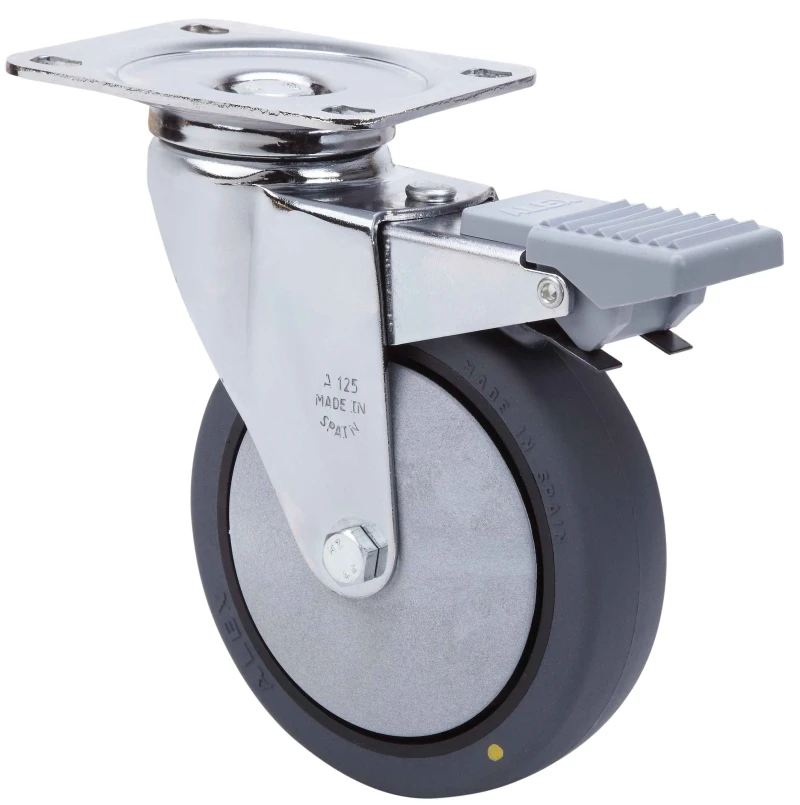 Roulettes conductrices en polyuréthane gris. Indiquées spécialement pour supporter des charges jusqu'à 100 kg.