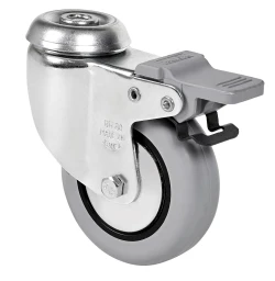 Roulettes en caoutchouc gris injecté. Indiquées spécialement pour supporter des charges jusqu'à 70 kg.