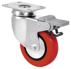 Roulettes en polyuréthane rouge injecté. Indiquéees spécialement pour supporter des charges jusqu'à 100 kg.