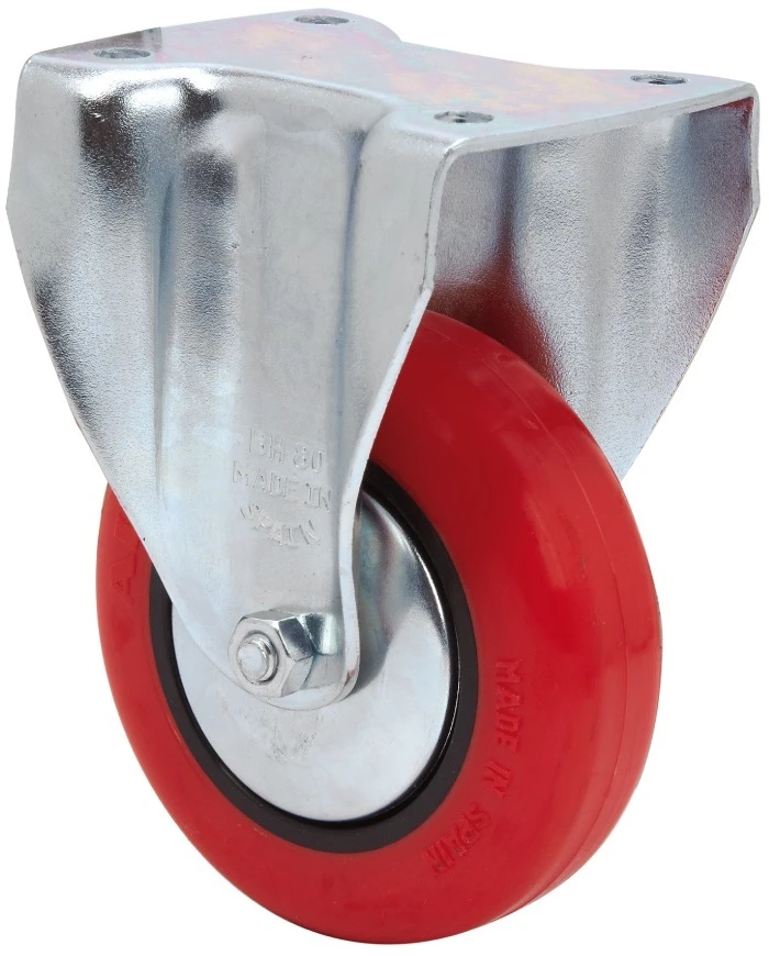 Roulettes en polyuréthane rouge injecté. Indiquéees spécialement pour supporter des charges jusqu'à 100 kg.