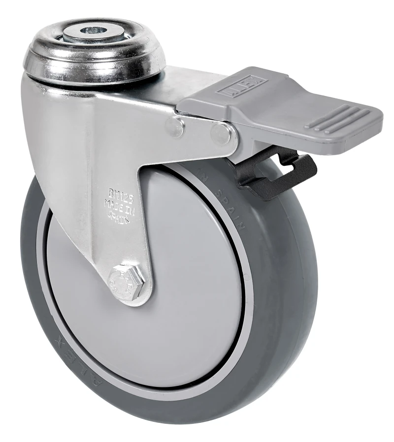 Roulettes en caoutchouc gris injecté. Indiquées spécialement pour supporter des charges jusqu'à 90 kg.