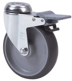 Roulettes en caoutchouc gris injecté. Indiquées spécialement pour supporter des charges jusqu'à 90 kg.