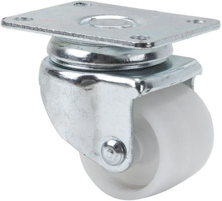 Roulettes en polypropylène blanc indiquées spécialement pour supporter des charges jusqu'à 45 kg.