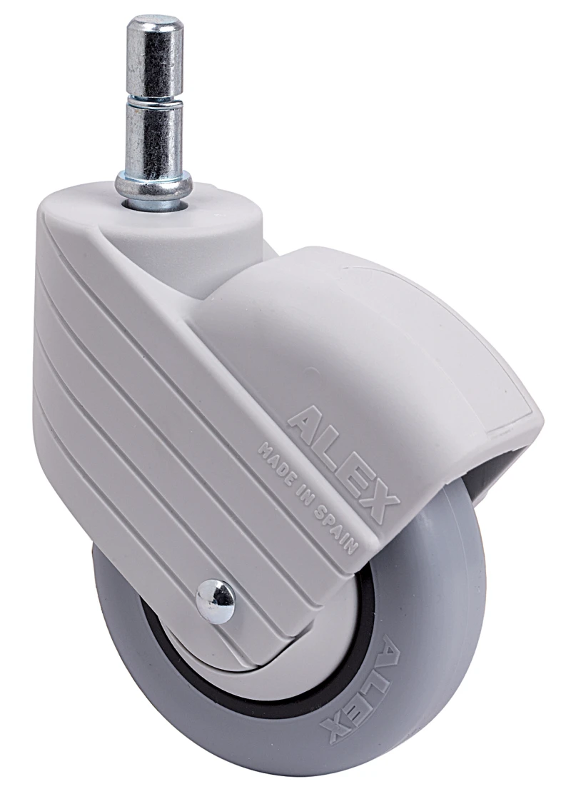Roues et roulettes en Poliamix et caoutchouc gris. Spécialement indiqué pour supporter des charges allant jusqu'à 40 Kg. Notre gamme de roues de la série HP-PGI est recommandée pour les secteurs de capacité de charge moyenne. Conçue pour présentoirs, meubles, tabourets, restauration, hôpitaux, outils, meubles sanitaires, cliniques, pieds à perfusion, chariots pour nettoyage.