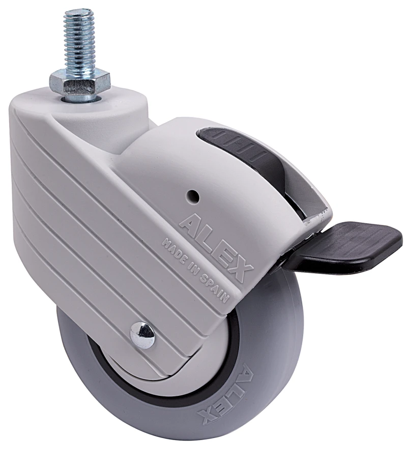 Roues et roulettes en Poliamix et caoutchouc gris. Spécialement indiqué pour supporter des charges allant jusqu'à 40 Kg. Notre gamme de roues de la série HP-PGI est recommandée pour les secteurs de capacité de charge moyenne. Conçue pour présentoirs, meubles, tabourets, restauration, hôpitaux, outils, meubles sanitaires, cliniques, pieds à perfusion, chariots pour nettoyage.