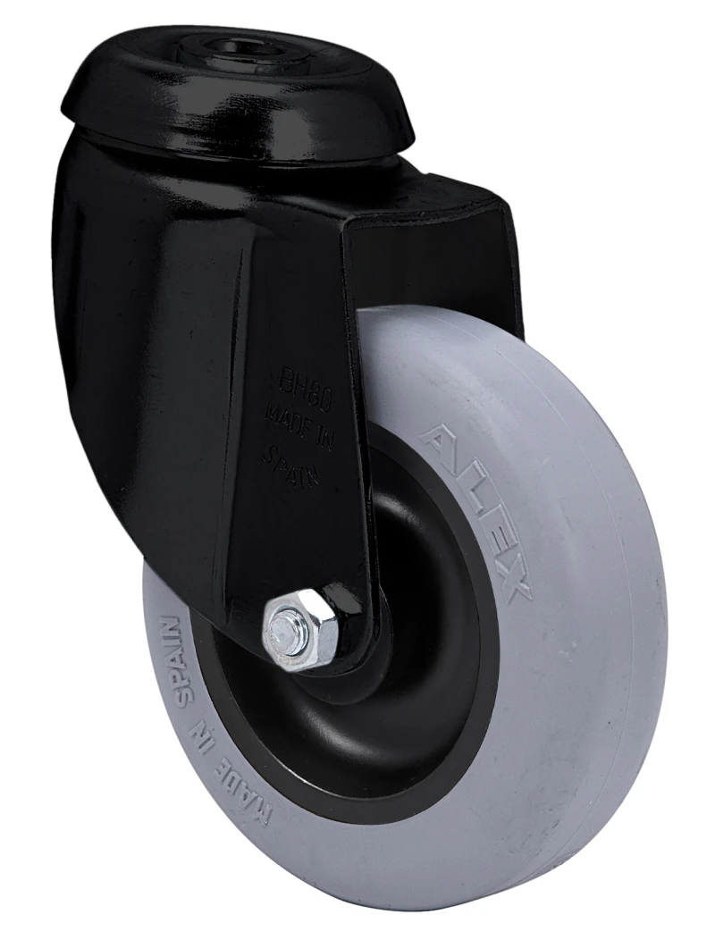 Roulettes en caoutchouc gris injecté. Indiquées spécialement pour supporter des charges jusqu'à 60 kg.