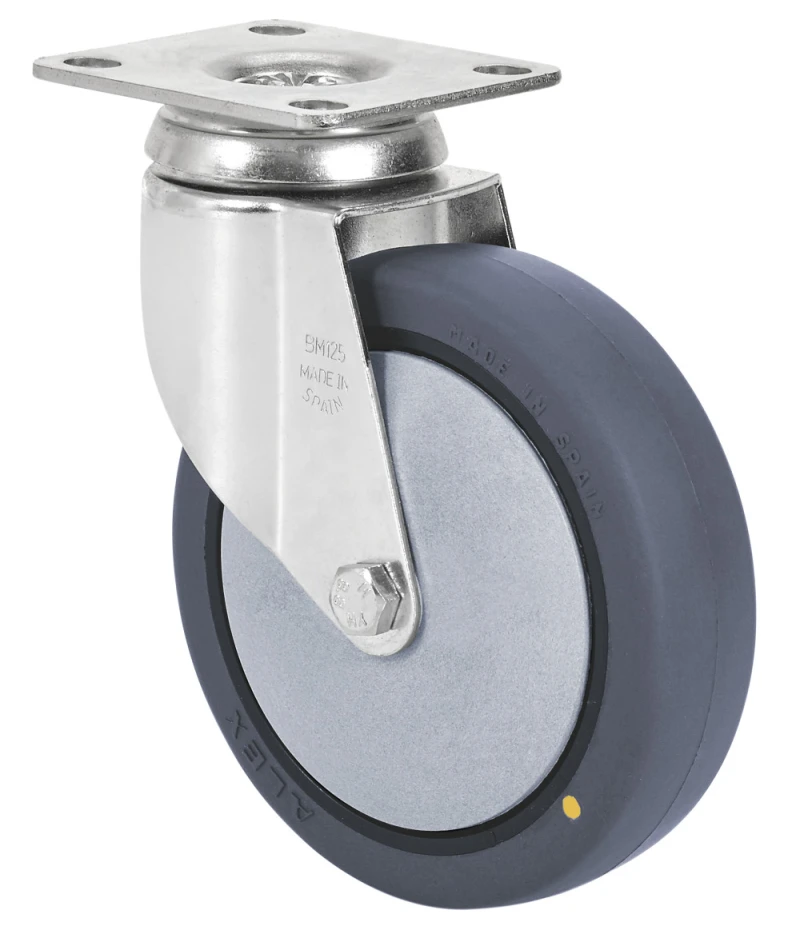 Roues en polyuréthane gris conductif. Adaptées pour supporter des charges allant jusqu'à 100 Kgs.