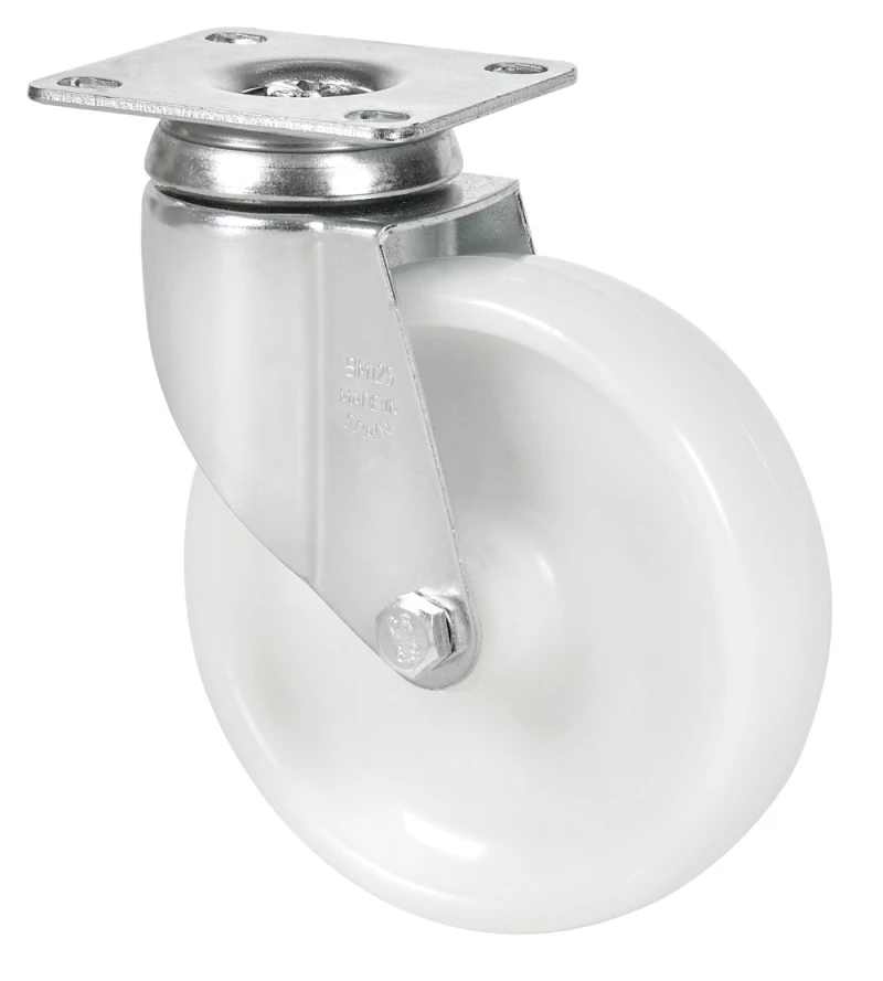 Roues en polypropylène blanc. Particulièrement adaptées pour supporter des charges allant jusqu'à 100 Kgs.
