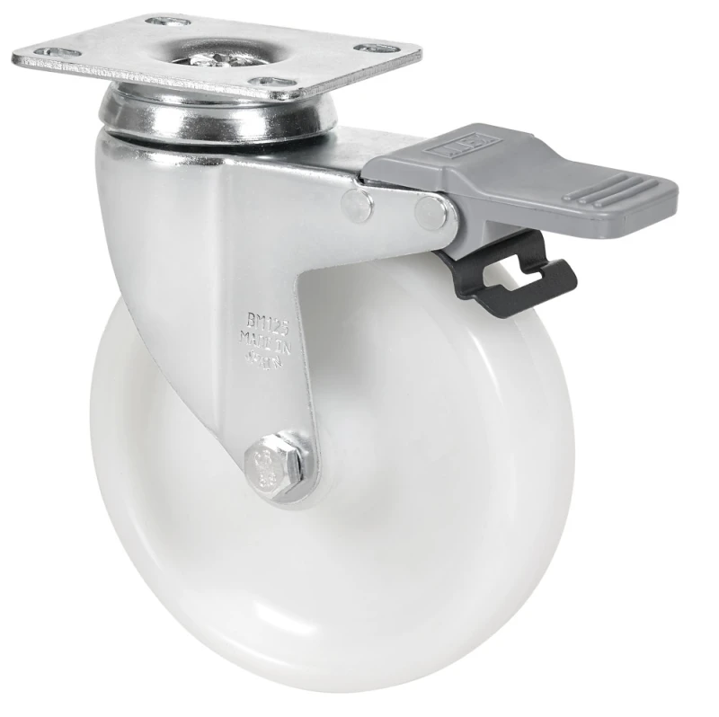 Roues en polypropylène blanc. Particulièrement adaptées pour supporter des charges allant jusqu'à 100 Kgs.
