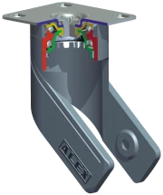 Monture fabriquée en polyamide de haute qualité renforcé par de la fibre de verre. Tête supérieure pivotante construite sur un double chemin de billes renforcé (fixation sur platine et à œil). Roulement à billes inséré (fixation tige filetée). Fabriquée selon les normes Européennes EN 12530.