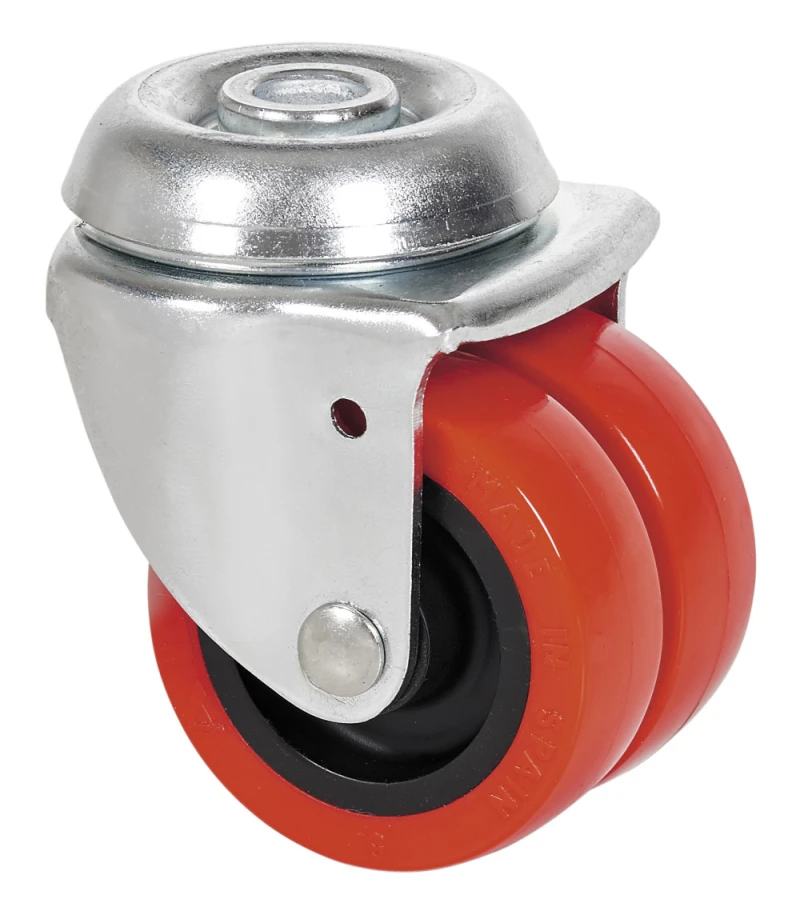 Roues en polyuréthane injecté. Particulièrement adaptées pour supporter des charges allant jusqu'à 100 Kgs.