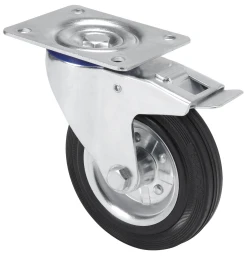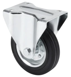 Roues à noyau métallique avec bande de caoutchouc noir, spécialement conçues pour résister à des charges jusqu’à 205 kg. elle est appliquée dans les chariots à outils, les chariots tubulaires, la logistique interne, les stands mobiles, les outils de transport, les ascenseurs, les ateliers, les missions de logistique des matériaux, les restaurants, les balayeuses, les polisseuses, les soudeuses, les bétonnières, les grues mobiles, les remorques, les fermes agricoles, les tables élévatrices, palettes à roulettes, rouleurs, conteneurs.