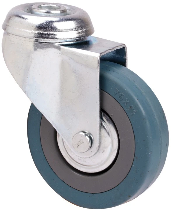 Roulettes en caoutchouc injecté gris. Indiquées spécialement pour supporter des charges jusqu'à 80 kg.