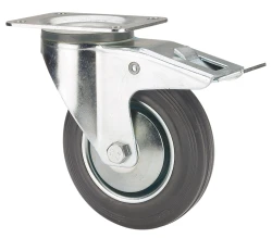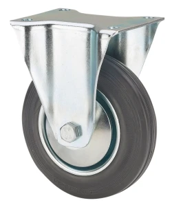 Roulettes à jante métallique avec bande en caoutchouc noir. Indiquées spécialement pour supporter de fortes charges jusqu'à 205 kg.