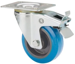 Roulettes en caoutchouc bleu. Indiquées spécialement pour supporter de fortes charges jusqu'à 130 kg.