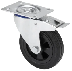 Roulettes en caoutchouc noir. Indiquées pour supporter de forte charges jusqu'à 200 kg.