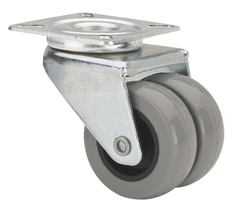Roulettes double en caoutchouc gris. Indiquées spécialement pour supporter des charges jusqu'à 80 kg.