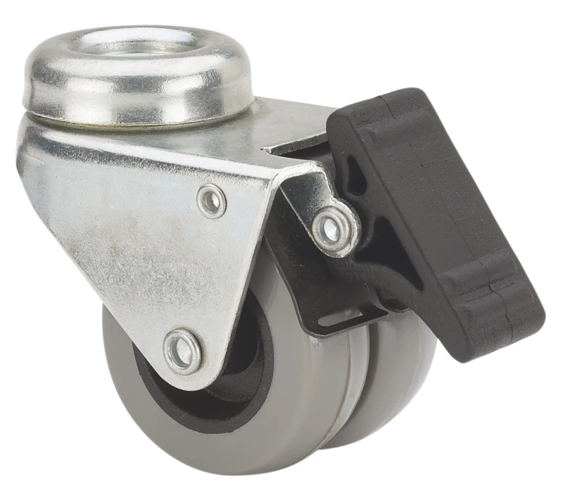 Roulettes double en caoutchouc gris. Indiquées spécialement pour supporter des charges jusqu'à 80 kg.