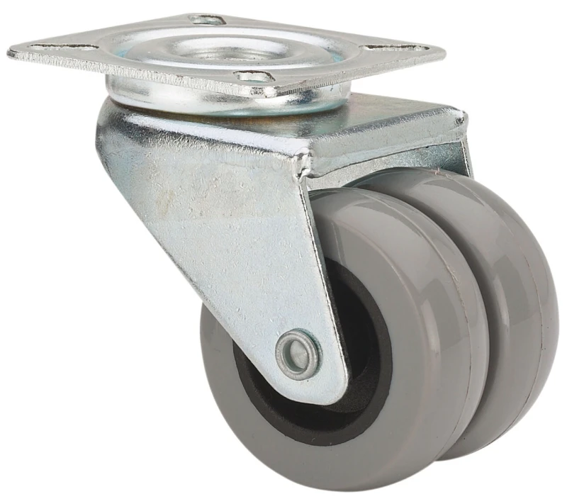 Roulettes double en polyamide gris. Indiquées spécialement pour supporter des charges jusqu'à 80 kg.