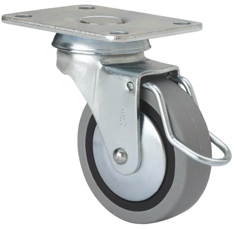 Roulettes en caoutchouc injecté gris indiquées spécialement pour supporter des charges jusqu'à 25 kg.