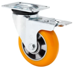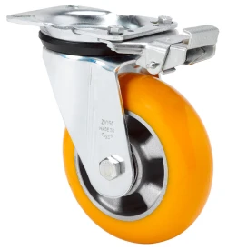 Roues et roulettes avec noyau en aluminium et bande en polyuréthane coulé d'une dureté de 95° Shore A, avec une bande de roulement en forme de ballon, spécialement conçue pour supporter des charges élevées pouvant atteindre 700 kg. Elles sont utilisées dans les outils de transport logistique, les conteneurs, le transport industriel, les chariots à outils, les stands mobiles, les chariots à outils, les usines alimentaires, les missions d'usine logistique, les balayeuses, les polisseuses, les machines lourdes, les grues mobiles, les tables élévatrices, les chaudières, les conteneurs, les planificateurs, les dessinateurs, ingénierie mécanique. Principalement dans les secteurs de l'aéronautique, du ferroviaire, de l'automobile, de l'alimentation, des ateliers et des industries.