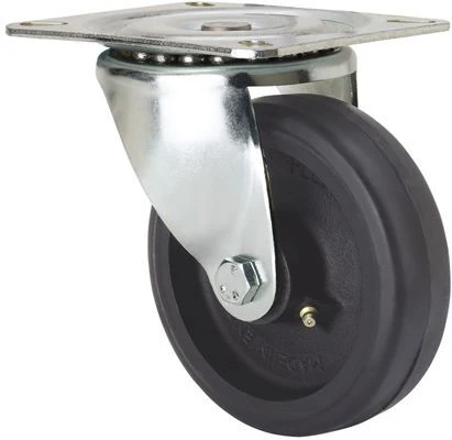 Roulettes à noyau en acier et bande en caoutchouc noir naturel, indiquées spécialement pour supporter de fortes charges jusqu'à 400 kg.