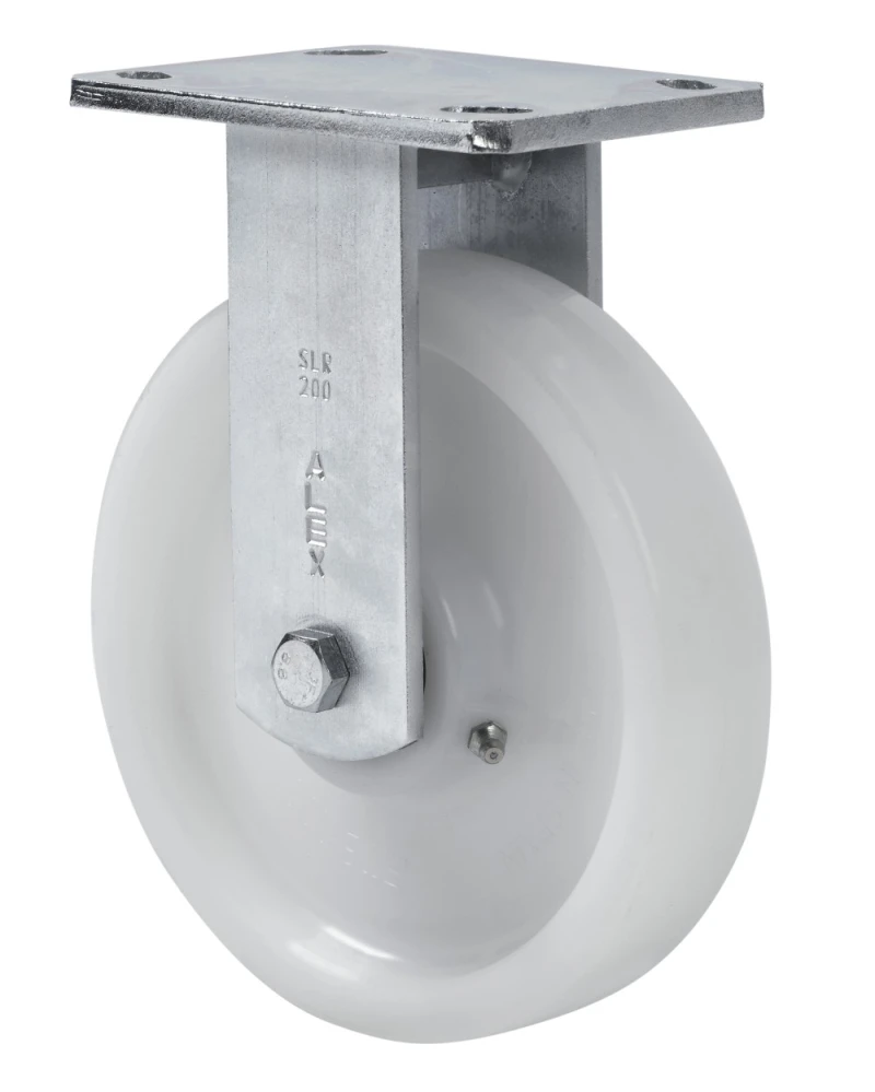 Roulettes en nylon extra-robustes, indiquées spécialement pour supporter de fortes charges jusqu'à 1 000 kg.