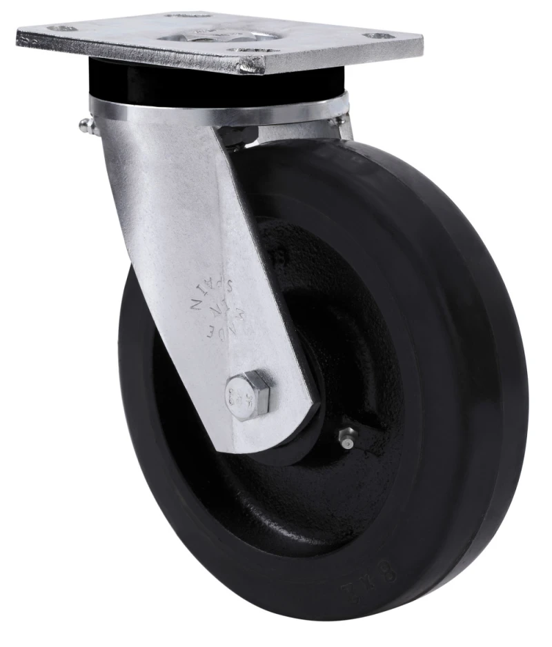Roulettes à noyau central en acier et bande en caoutchouc noir naturel, indiquées spécialement pour supporter de fortes charges jusqu'à 600 kg.