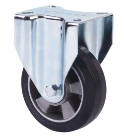 Roulettes à noyau central en aluminium avec bande en caoutchouc noir avec une dureté de 70º shore A. Recommandées spécialement pour supporter de fortes charges jusqu'à 450 Kg.