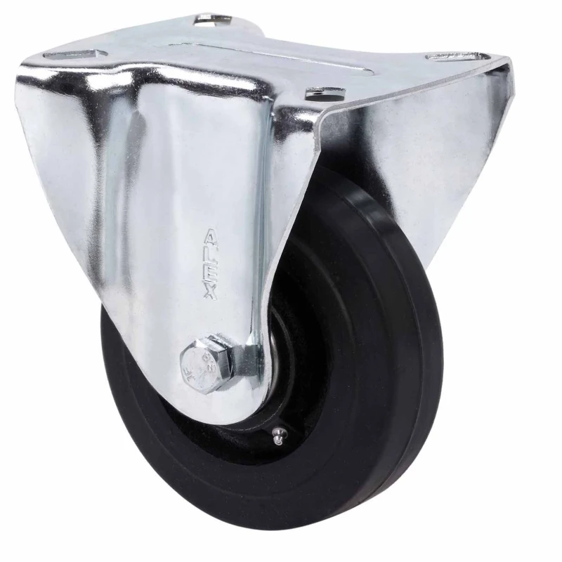 Roulettes à noyau d'acier et bande en caoutchouc noir naturel, recommandées spécialement pour supporter de fortes charges jusqu'à 600 Kg.