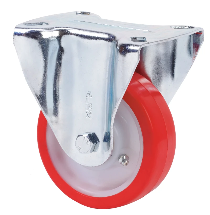Roulettes à noyau blanc et bande de polyuréthane rouge dureté 90-95º shore A. Recommandées spécialement pour supporter de fortes charges jusqu'à 600 Kg.