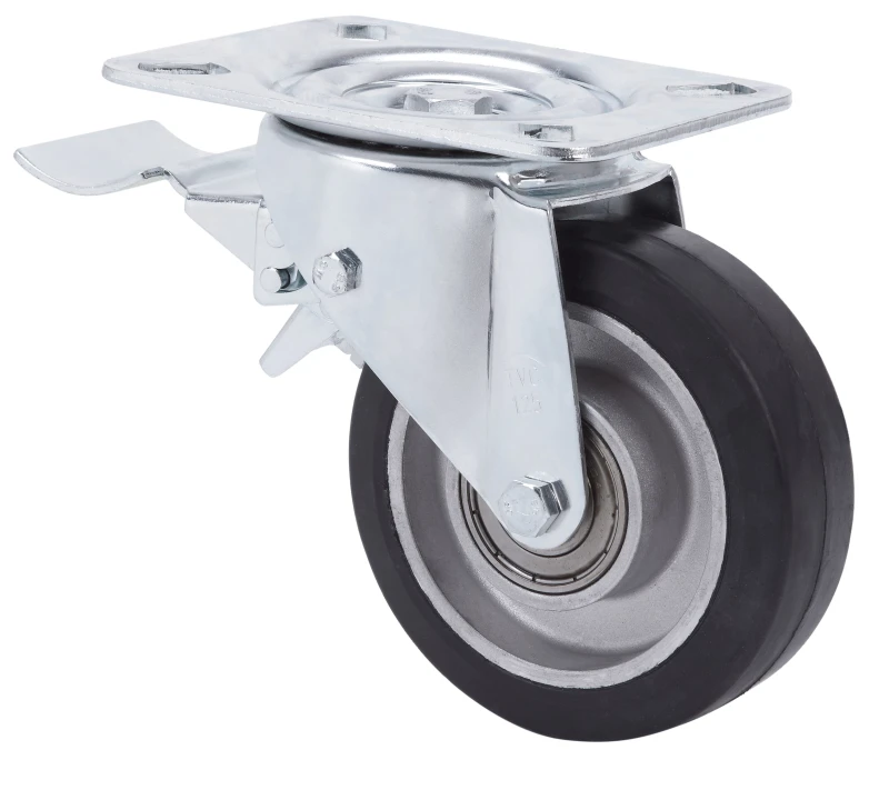 Roulettes à noyau en aluminium avec bande en caoutchouc noir élastique avec une dureté de 70˚ shore A. Indiquées spécialement pour supporter des charges jusqu'à 250 kg.