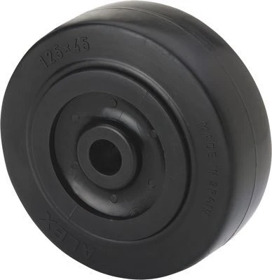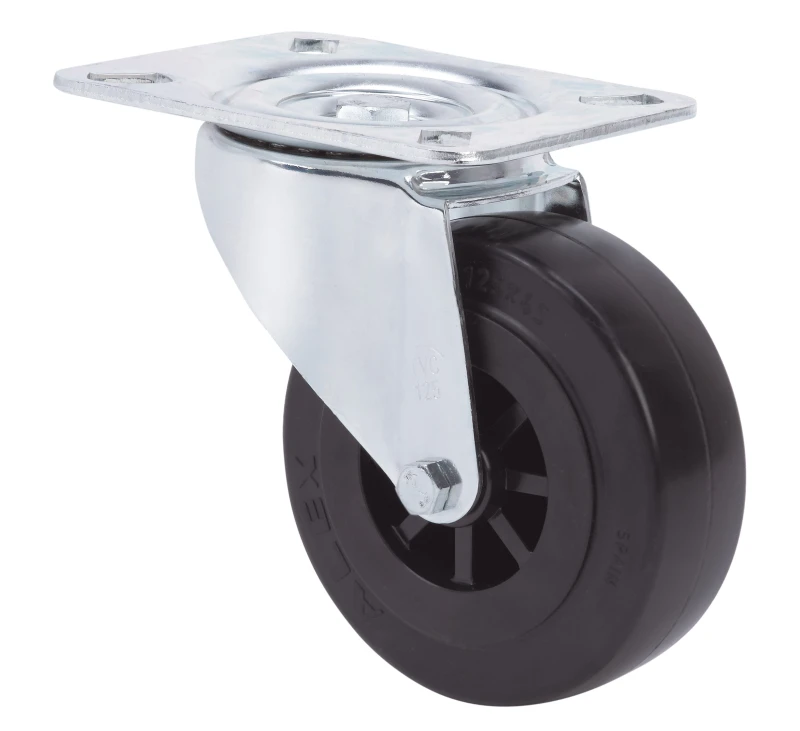 Roulettes à noyau en nylon noir et bande en caoutchouc.