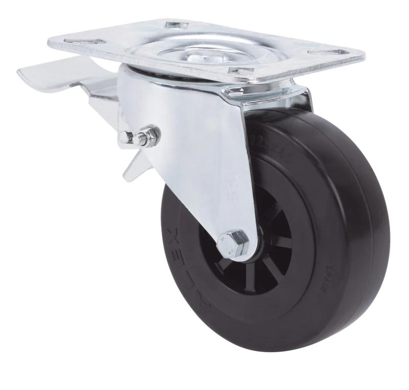 Roulettes à noyau en nylon noir et bande en caoutchouc.