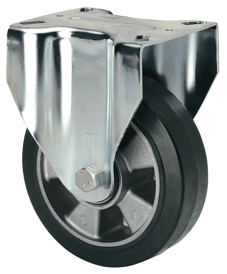 Roulettes à noyau en aluminium et bande en caoutchouc noir élastique avec une dureté 70º shore A. Indiquées spécialement pour supporter des charges jusqu'à 450 Kg.