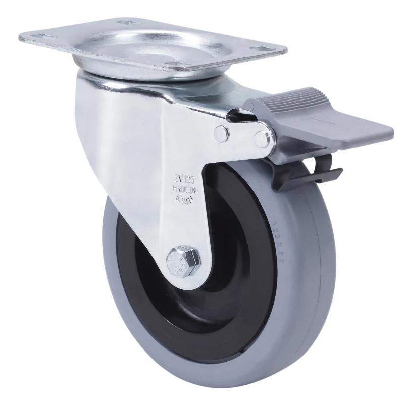 Roulettes en caoutchouc gris naturel. Indiquées spécialement pour supporter des charges jusqu'à 135 kg.