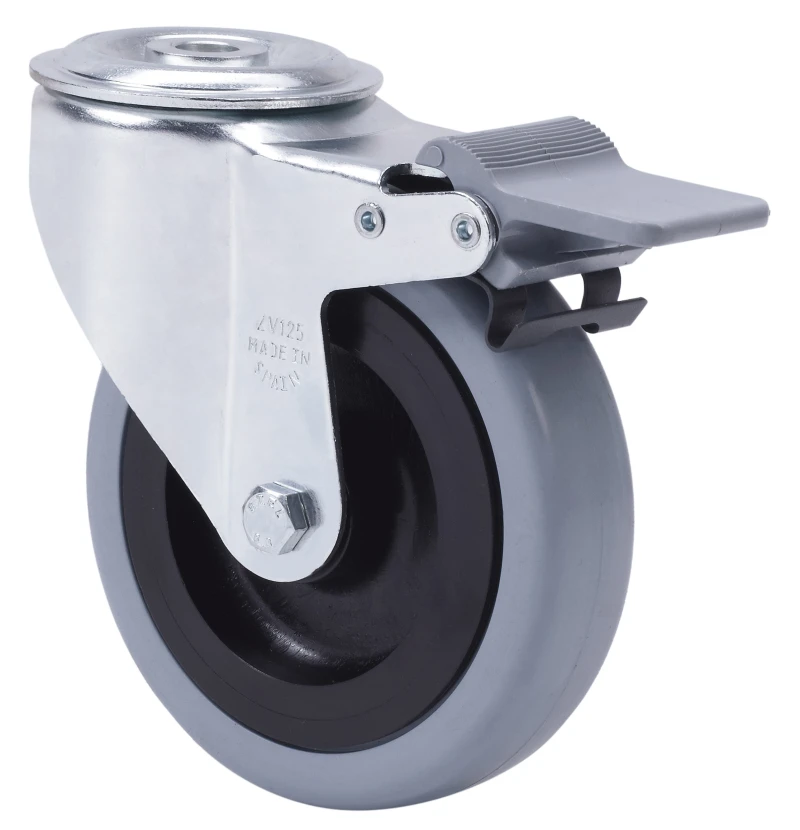 Roulettes en caoutchouc gris naturel. Indiquées spécialement pour supporter des charges jusqu'à 135 kg.
